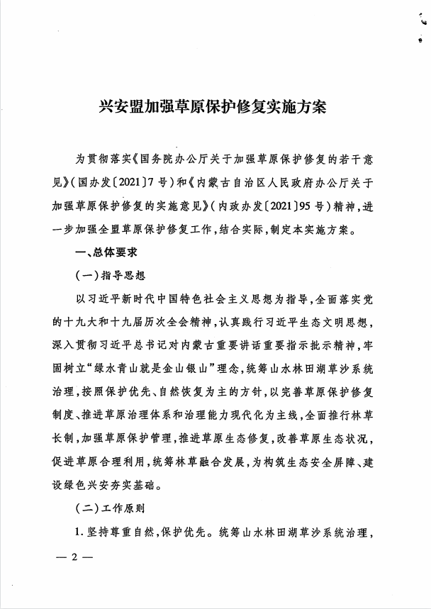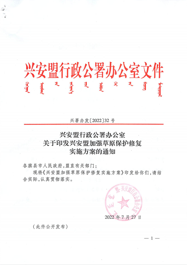 兴安盟行政公署办公室关于印发兴安盟加强草原保护修复实施方案的通知(兴署办发〔2022〕32号)