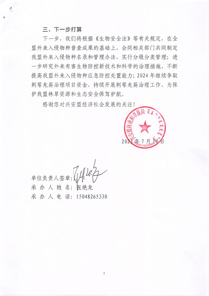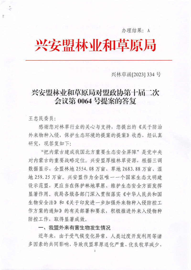 兴安盟林业和草原局对盟政协第十届二次会议第0064号提案的答复