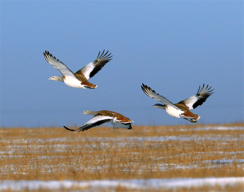 据悉,图牧吉保护区管理局在保护区内设有33个大鸨监测点,工作人员每月开展普查监测,监测面积覆盖了大鸨的整个活动区域。根据冬季大鸨普查监测和监测统计结果显示,2023年,在图牧吉保护区越冬的国家一级保护鸟类大鸨的数量达120余只,春秋两季在图牧吉保护区停留和繁殖的大鸨数量可达280只以上。
