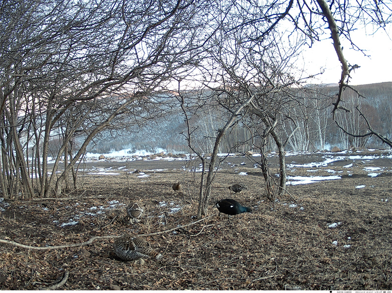 11月25日,乌兰河地方级自然保护区管理局工作人员在使用野生动物监测仪开展巡护监测时,首次拍摄到了黑琴鸡觅食活动的珍贵画面。画面中,10余只黑琴鸡飞到山丁树下觅食并发出咕咕叫声。