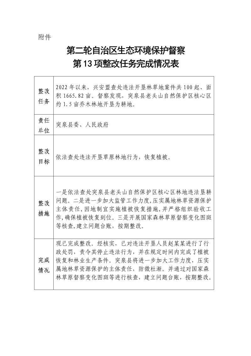关于自治区生态环境保护督察整改任务销号的公示(第二轮第13项整改任务)