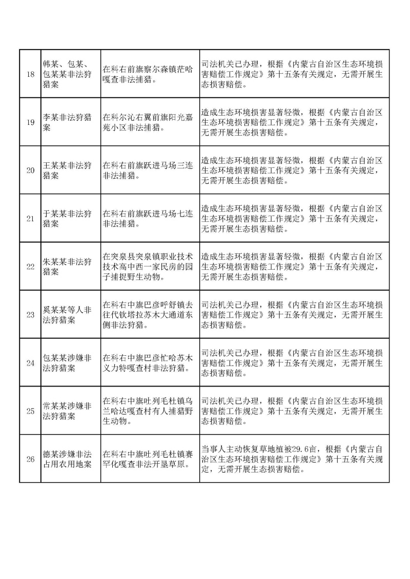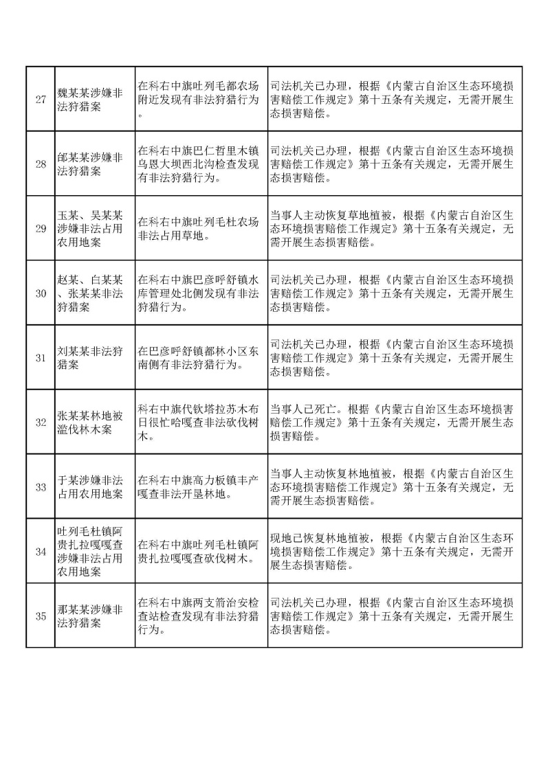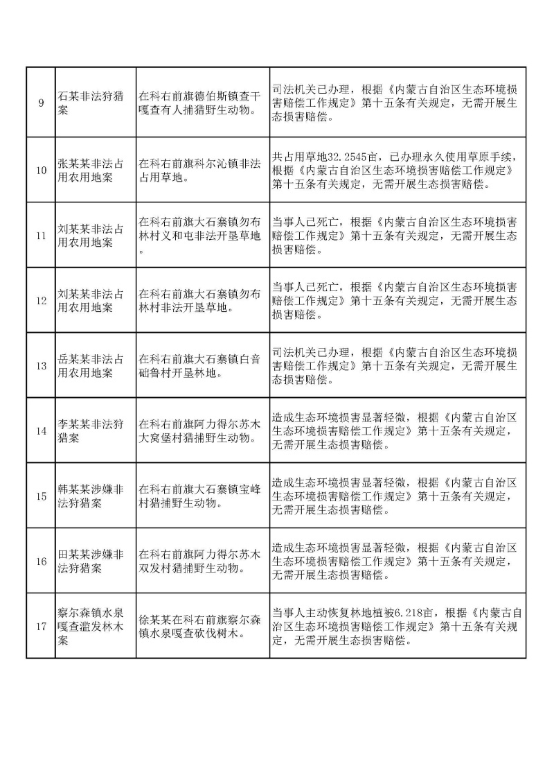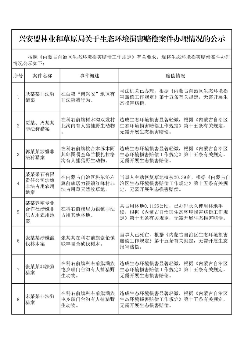 兴安盟林业和草原局关于生态环境损害赔偿案件办理情况的公示