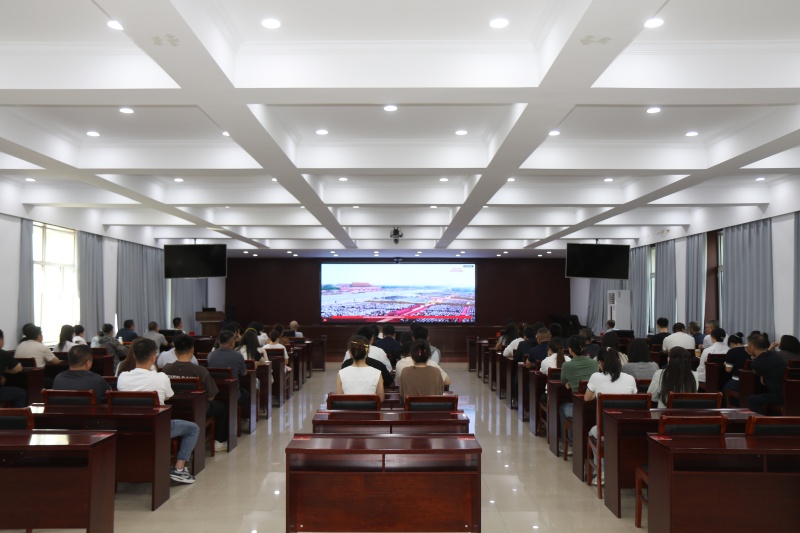 屏幕前,大家认真聆听习近平总书记重要讲话,共同缅怀革命先烈的丰功伟绩,深刻感悟伟大抗战精神的历史意义和时代价值。当升国旗唱国歌时,全体干部职工齐声高唱国歌,表达对国家的敬意、对历史的铭记。随后,大家共同观看盛大阅兵仪式,45个方(梯)队依次受阅,气氛庄重热烈,激励着全体人员铭记历史、珍爱和平、开创未来。