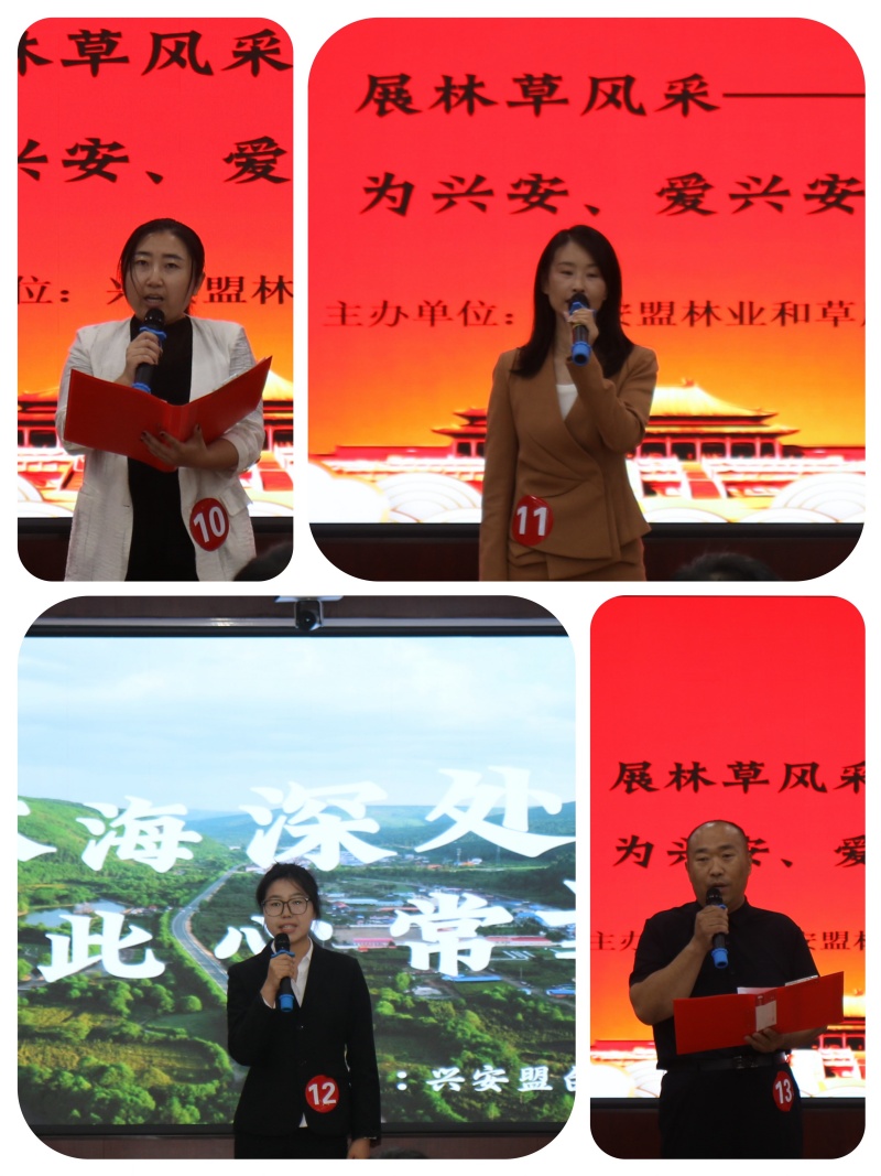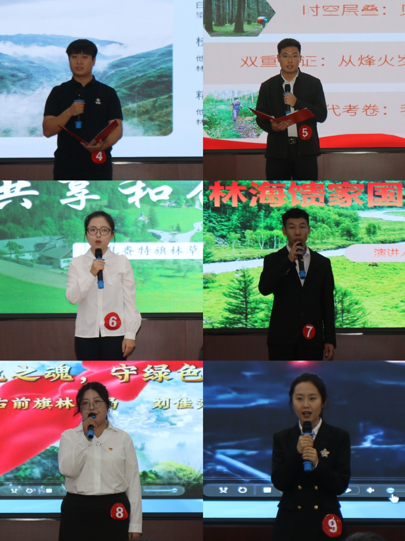 比赛现场气氛热烈,各参赛选手紧扣“赓续红色血脉、守护绿色兴安”核心主题,既讲述了全盟林草系统在三北防护林建设、退化草原生态修复、碳汇项目推进、蒙榛产业发展等工作中取得的扎实成果;也分享了望火楼值守夫妻白树林与格日勒二十载守护林海、林业工人梁金彪十年栽种198棵云杉、生态护林员边双占8年实现管护区域“零火灾零盗伐”等先进典型事迹;更展现了蒙汉群众携手防沙治沙、不同民族技术员结对传授育苗技术、多民族巡护队共守森林防火线的民族团结风采,生动诠释了林草人以实干践行“绿水青山就是金山银山”理念的担当。大家的精彩表现,充分展现了林草系统青年干部昂扬向上的精神风貌。