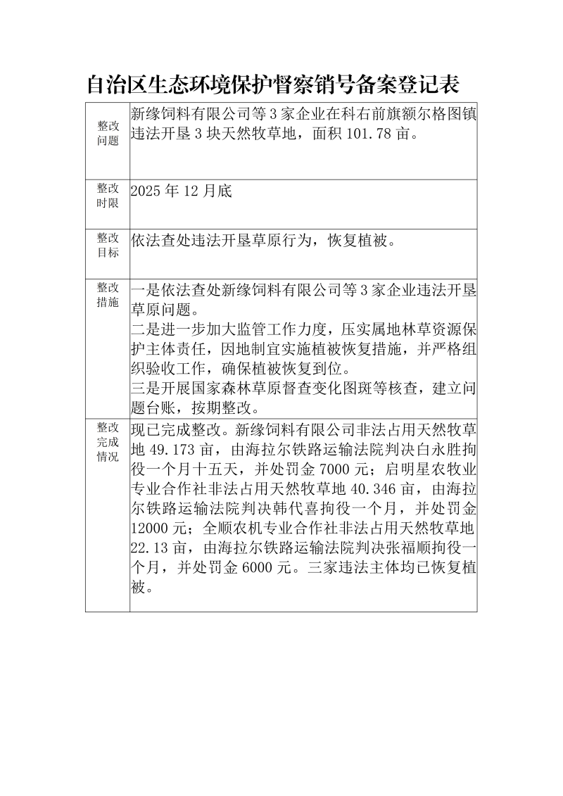 关于自治区生态环境保护督察整改任务销号的公示(第二轮第13项整改任务)
